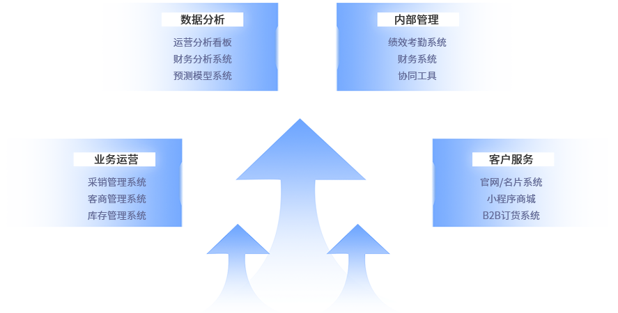 创建覆盖"业务运营→客户服务→数据分析→内部管理"的一体化数字平台,